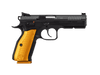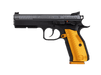The word Orange in the name of these CZ sport pistols stands for the highest possible quality and absolute top performance. The same is of course true for this model as well. It has been based on the CZ SHADOW 2 pistol which currently occupies the podium in the Production Division at the most prestigious international IPSC events. The ORANGE model, distinguishable at first glance by the new design of its aluminium grip panels in the typical orange colour, has been brought to perfection by tried and tested gunsmithing modifications.