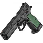 A more advanced design of the sports special for the IPSC Standard Division, as well as for hobby target shooting, with flat, green anodized duralumin grips and magazines with green anodized bases. Additional features include a height adjustable rear sight, left hand thumb rest, flat slide stop, adjustable, green anodized magazine release, and an extended manual lock safety on the left side (flat on the right side).