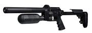 The Hunter Compact comes with a 300 cc carbon fiber bottle located in the front of the rifle to give great balance when shooting the rifle off-hand. It comes with a standard AR grip, full picatinny top rail with 20 MOA built in (30 MOA from late 2023), and a rear stock with adjustable length of pull and adjustable cheek piece as standard.